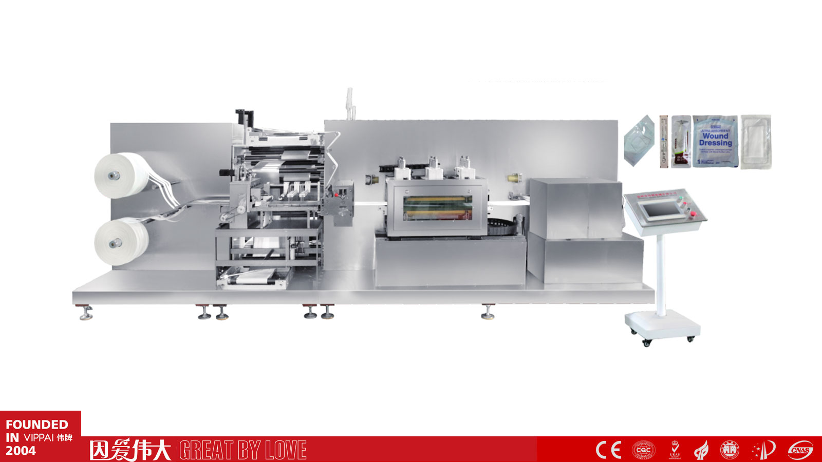 VPD300全自動多列棉片高速包裝機 采用多列棉條切,加液,封合等職能動作一次完成,速度快,加液大小可調,適用各類酒精棉片,口罩,衛生巾,卡片,輔料等包裝。