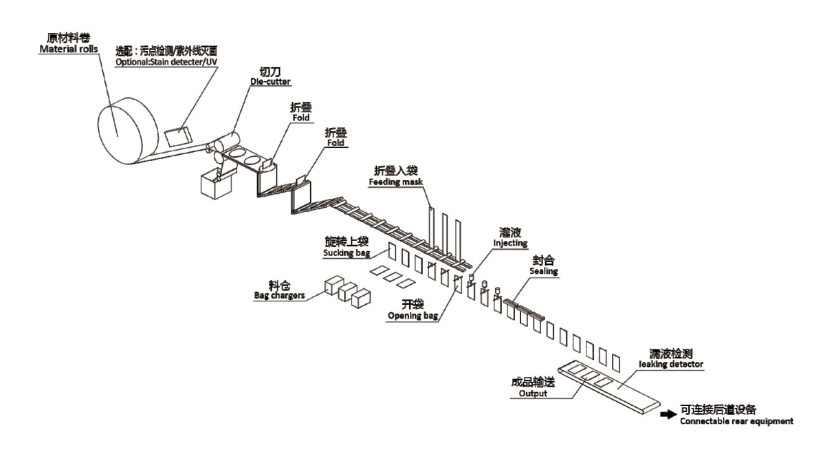 3、整個(gè)生產(chǎn)過(guò)程在防護(hù)罩內(nèi)完成,確保面膜無(wú)污染。