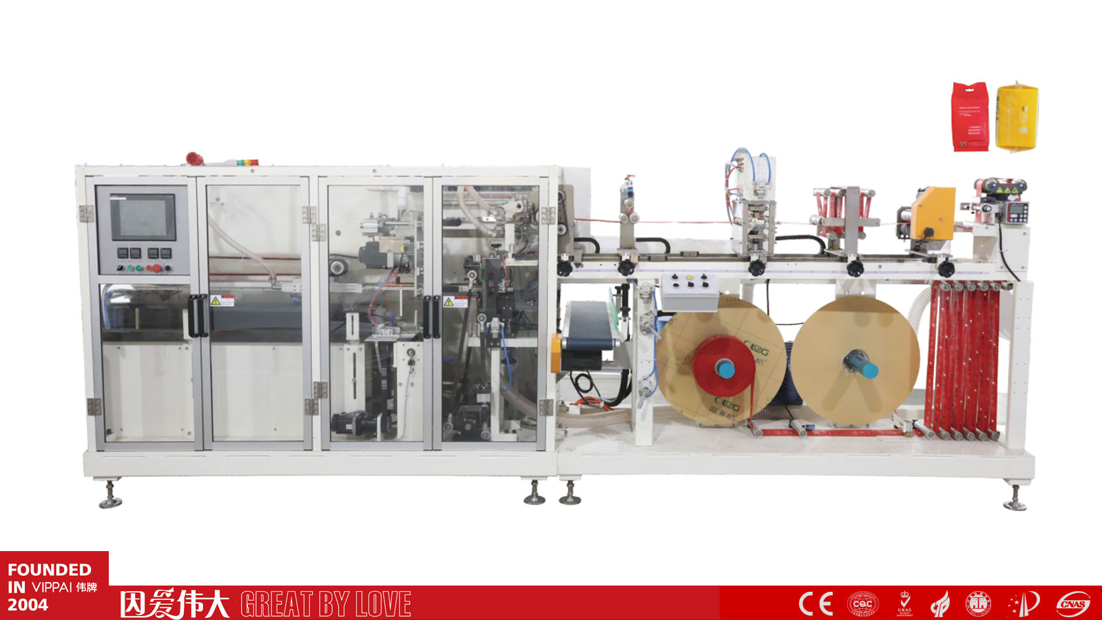VPD900M智能高速套袋機 根據市場需求特別硏發的智能式套袋機,適用于醫療、化妝品、生活用紙、食品等行業。設備集套袋、包裝、封合、打碼于一體,綠色環保。設備適用于衛生巾、護墊、寵物墊、棉柔巾、濕巾、尿不濕、手套、口罩、床墊、手術衣、蛋糕、吐司、面包等多種物品包裝,可根據客戶的產品要求定制